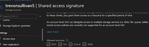 Step 2: Locate the Shared Access Signature Option